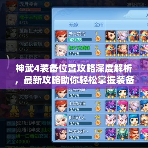 亲爱的玩家们,今天我们将深入探讨神武4中的装备位置攻略,在这款游戏中,装备的位置与获取方式对于角色实力的提升至关重要,我们将为您带来最新的攻略信息,帮助您在游戏中更好地获取和配置装备。